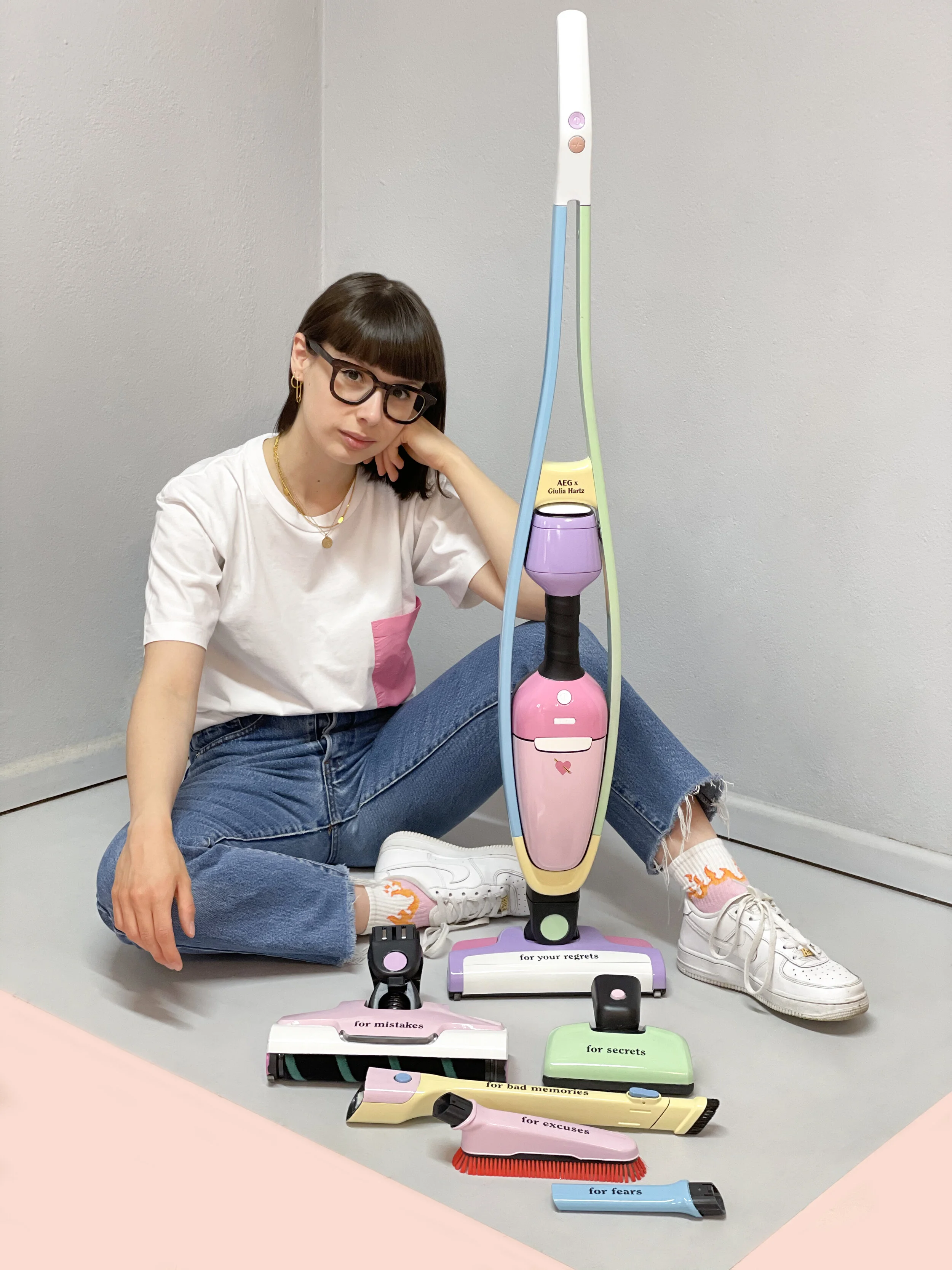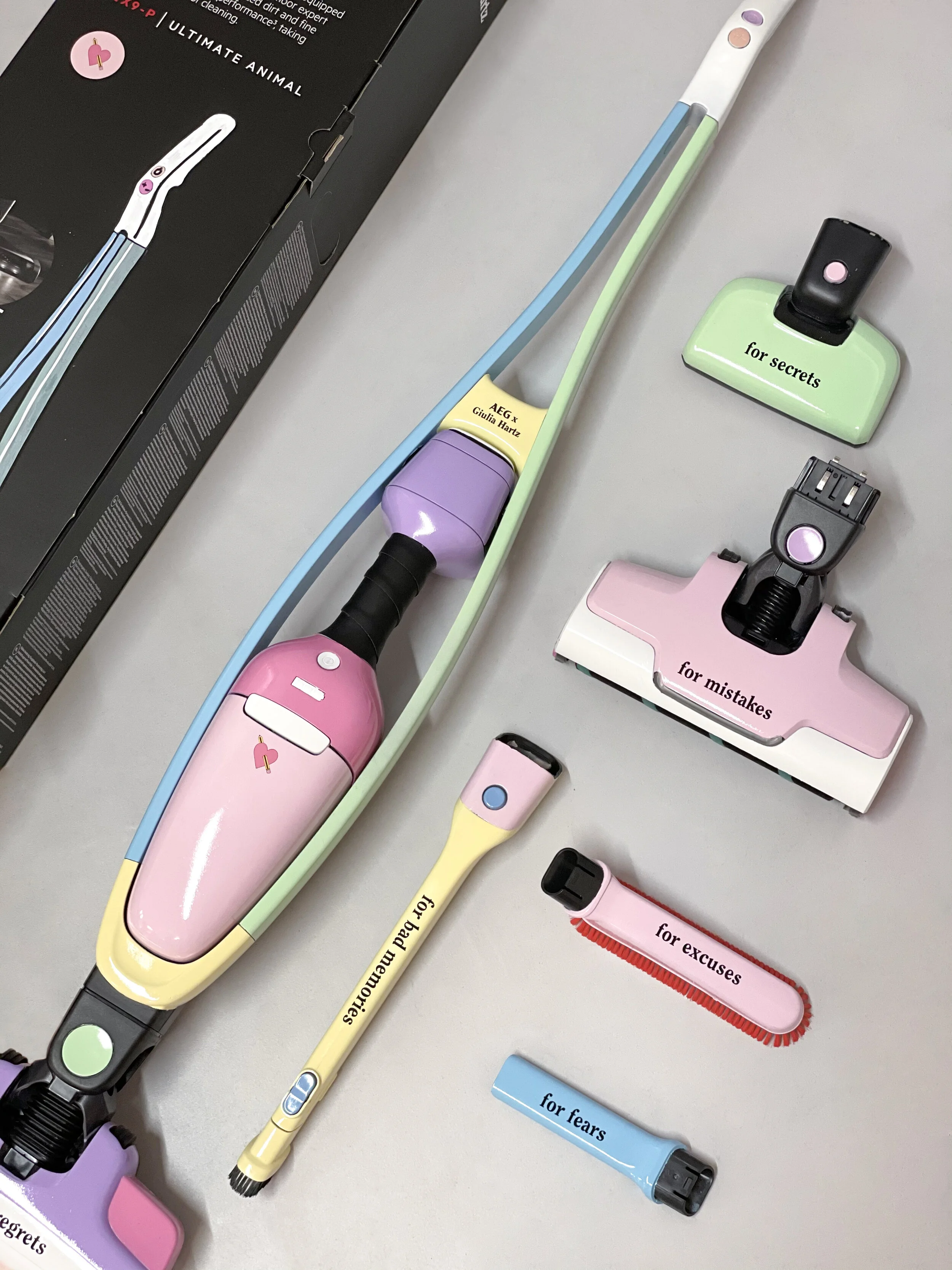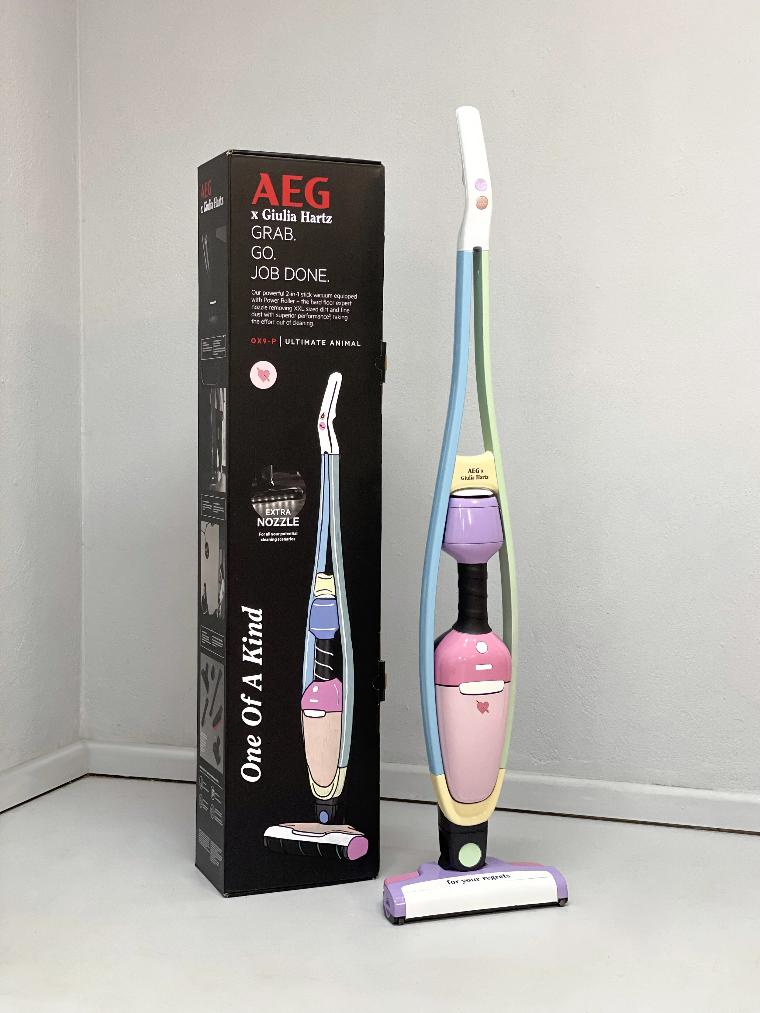 AEG Germany launched a campaign to challenge the idea that home appliances should be hidden away. They wanted to show that well-designed technology deserves to be seen and appreciated, just like any other design piece in a home. As part of this campaign, they selected two artists to transform their vacuum cleaners into statement pieces. Rather than simply applying a design to the appliance, I wanted to take it a step further. My goal was to bring my illustrated world into real life, turning the vacuum cleaner itself into one of my illustrations.